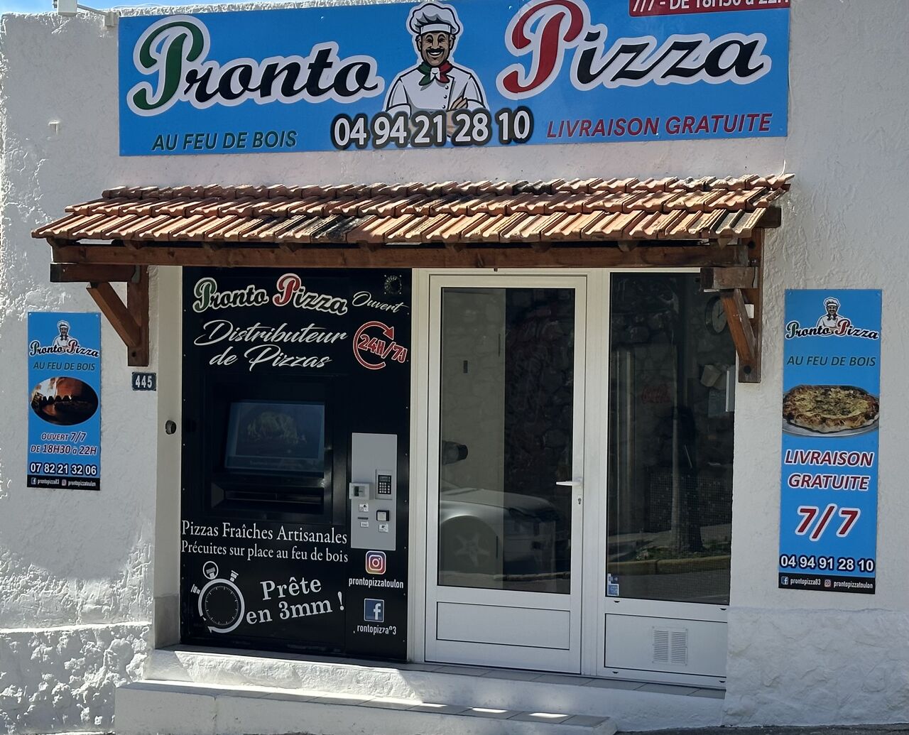 🏧 Notre distributeur automatique de pizzas est désormais disponible 7j/7 et 24h/24. Nous précuisons nos pizzas toujours avec des aliments frais et au feu de bois puis l'appareil réchauffe la pâte et ne cuit que les aliments !
